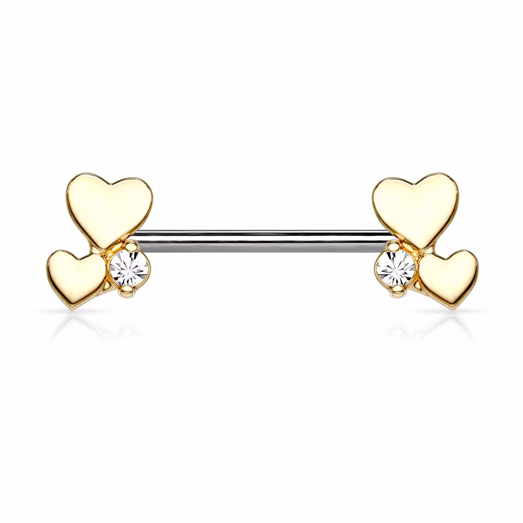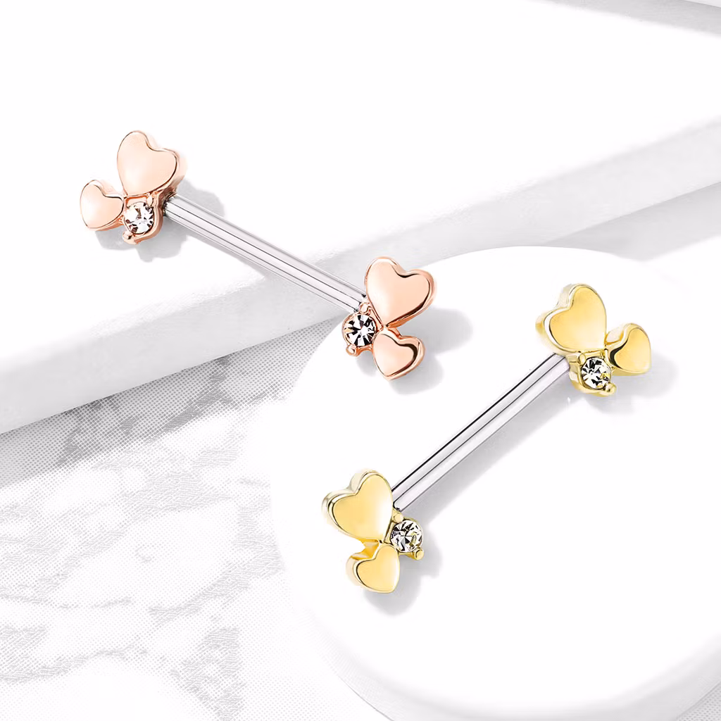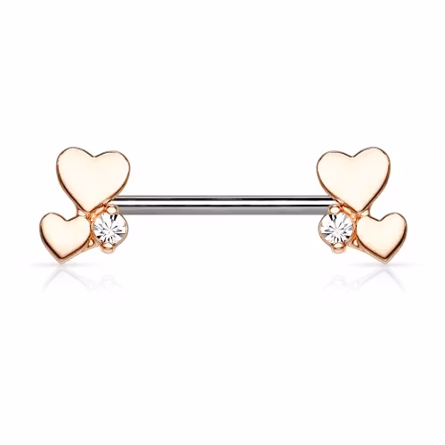 Väldigt fin bröst barbell med fyra stycken hjärtan i grupper.  316L Kirurg stål  Storlek: 1,6*14mm