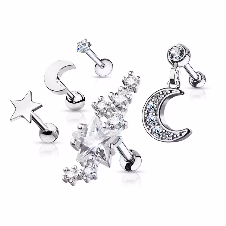 5 pack öronpiercing med vita ädelstenar. OBS! smyckena är i 316L krirug stål och inte guldpläterade.