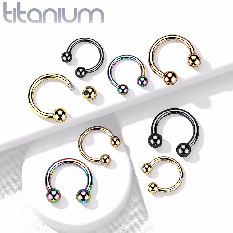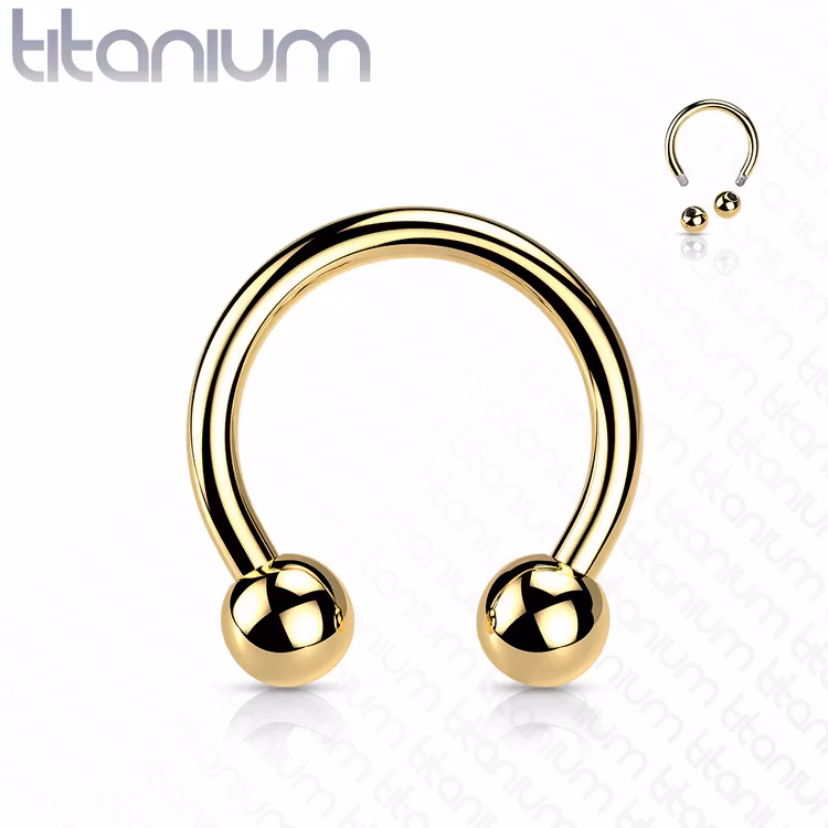 Hästsko i G23 titan med PVD plätering ( Fysikalisk ångdeponering) vilket gör att pläteringen skall sitta bättre. Detta smycket är ett bra alternativ o