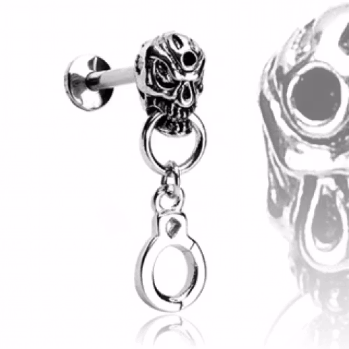 Snygg piercing till läpp med döskalle och handboja. Labret passar till ex. läpp, monroe, kindpiercing, öra såsom ex. tragus, helix. Naturligtvis beroende på sto