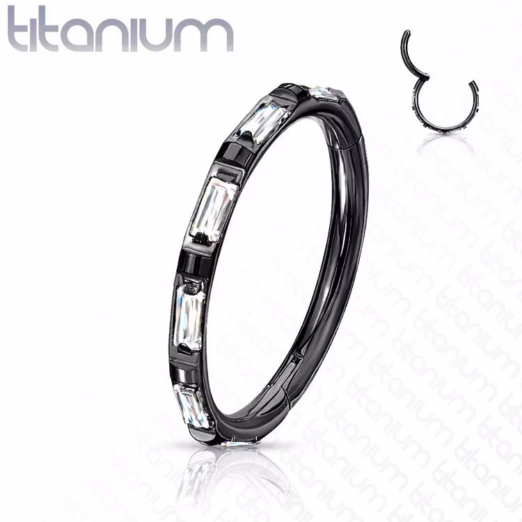 Väldigt fin piercing/segmentring med öppning. Vita ädelstenar sitter runt ringen. Detta smycke passar till de flesta typer av piercing och är ett bra första smycke då titan är allergi vänligt. Passar till exempel, Daith, conch, helix, läpp, septum, bröst, ögonbryn m.m. Smycket är 1,2*10mm.