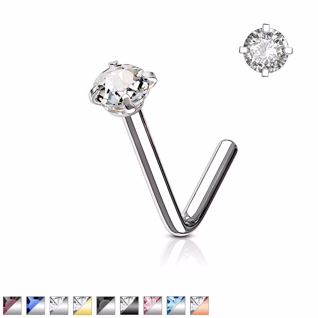 Böjd näspiercing med ädelsten. Material: 316L kirurg stål. Ädelstenen är 3mm. Storlek: 1*6mm.