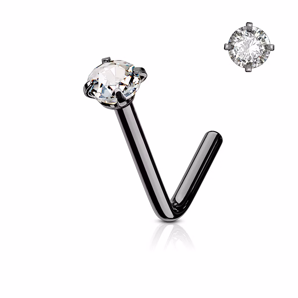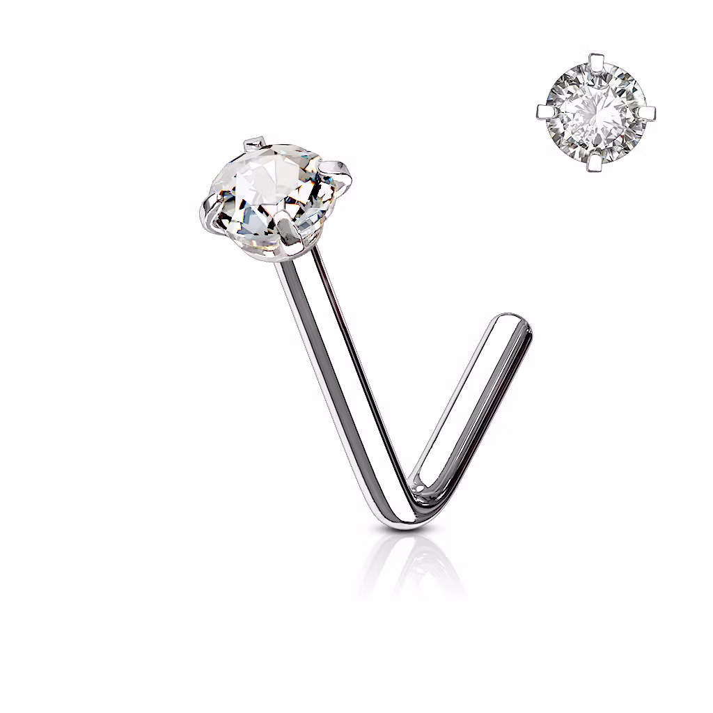 Böjd näspiercing med ädelsten