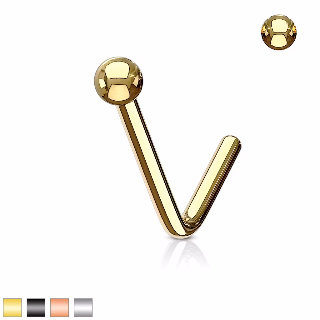 Stilren och snygg näspiercing med IP plätering. Material i piercingen är kirurg stål. Storlek är 0,8*6mm Boll storlek är 2mm.