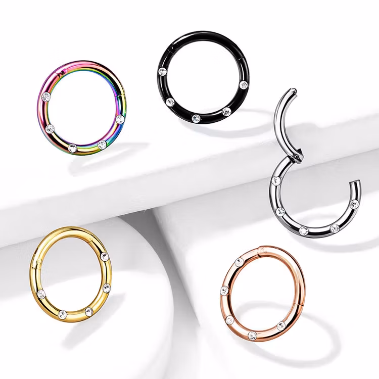 Piercingring med fem vita ädelstenar. Snygg segment clicker med vackra små ädelstenar. (cubic zirconia) Material: 316L Kirurg stål.