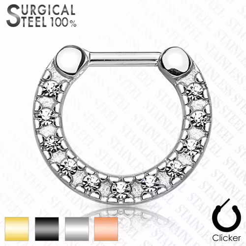 Septum clicker med stenar på rad 147 kr En glittrig och fin septum clicker med elva stycken kristaller på rad. Material: 316L kirurg stål. Storlek: 1,6*8mm. #Färg Stål-#c9c9c9 I lager. Lägg i korgen Lagersaldo: Artikelnummer: 111001501601 Dela Information Recensioner En glittrig och fin septum clicker med elva stycken kristaller på rad. Material: 316L kirurg stål. Storlek: 1,6*8mm.