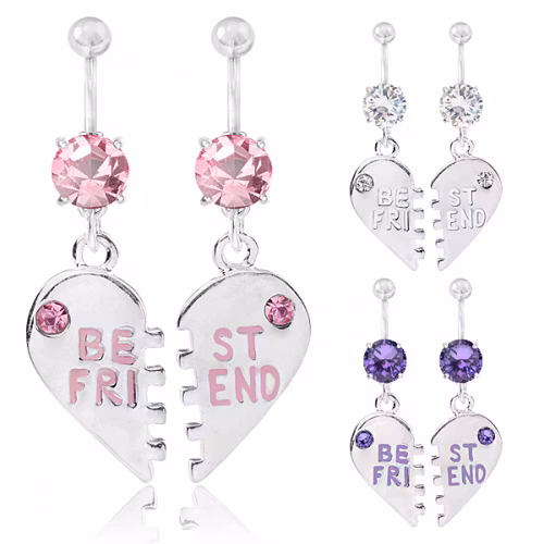 Ett par "Best friend" navelsmycken med CZ. Piercingsmycken säljes endast i par (2st). 316L kirurg stål stav. Staven är 1,6*10mm.