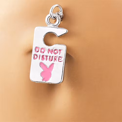 Omvänt navelsmycke med rosa kanin. 316L kirurg stål stav. Staven är 1,6*11mm.