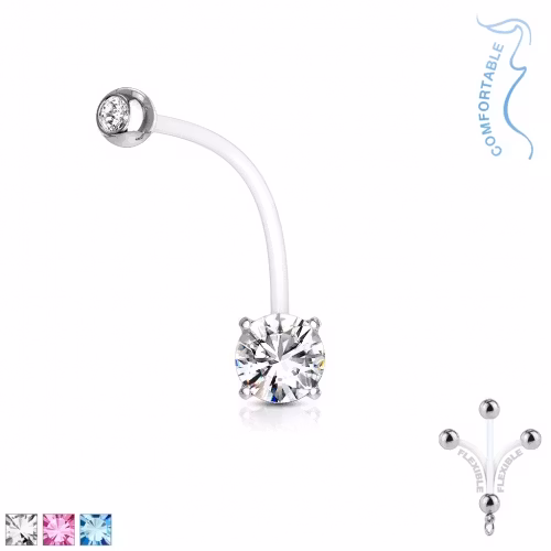 Fin gravidpiercing med ädelsten. Bioflex stav Storlek: 1,6*25mm