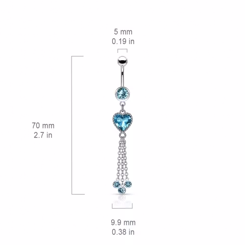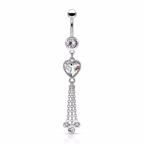 Snygg navelpiercing med tre kedjor och ett stort ädelstenshjärta! 316L Kirurg stål Storlek: 1,6*10mm