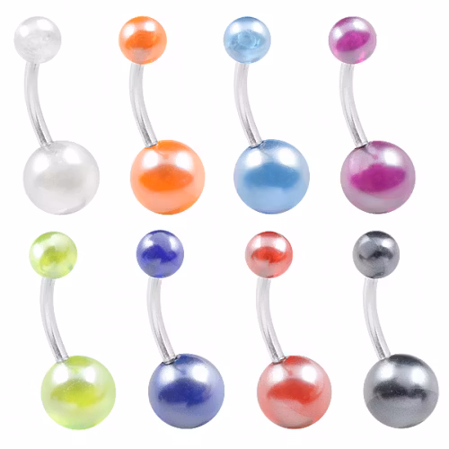 Piercing till navel som finns i flera färger. 316L kirurg stål stav med akrylplast bollar. Staven är 1,6*10mm och 1,6*11mm. Bollarna är 5mm och 8mm.