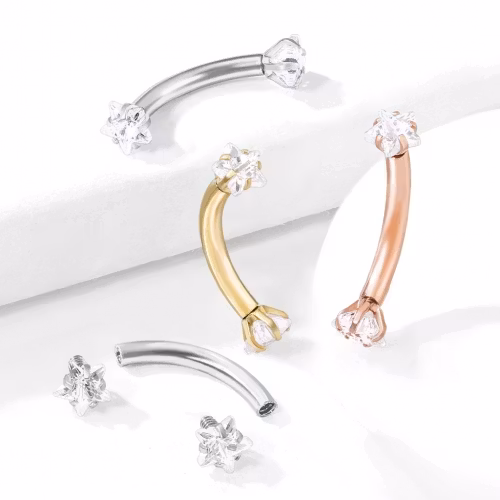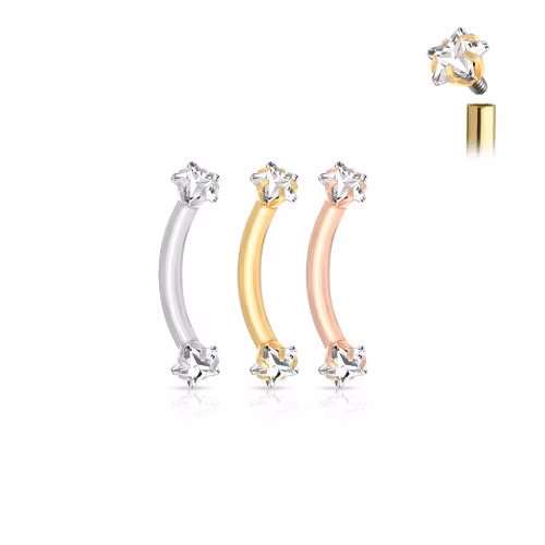 Böjd barbell med ädelstens stjärnor 316L Kirurg stål Storlek: 1,2*8mm