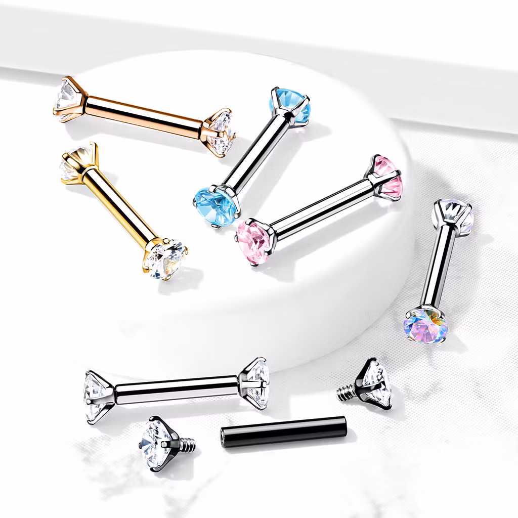 Barbell med två ädelstens toppar $8.38 Fin barbell med två stycken ädelstenar på var sin sida av staven. Ädelstenarna är 3mm stora. Barbellen är invändigt gängad. Färg Vit Rosa Turkos Regnbågsskimmer Svart Storlek 1,2*8mm 1,2*10mm I lager. Lägg i korgen Lagersaldo: Artikelnummer: 2263 Dela Information Recensioner Fin barbell med två stycken ädelstenar på var sin sida av staven. Ädelstenarna är 3mm stora. Barbellen är invändigt gängad.