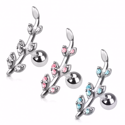 Fin helix piercing med lövranka och CZ stenar. 316L Kirurg stål Storlek: 1,2*6mm