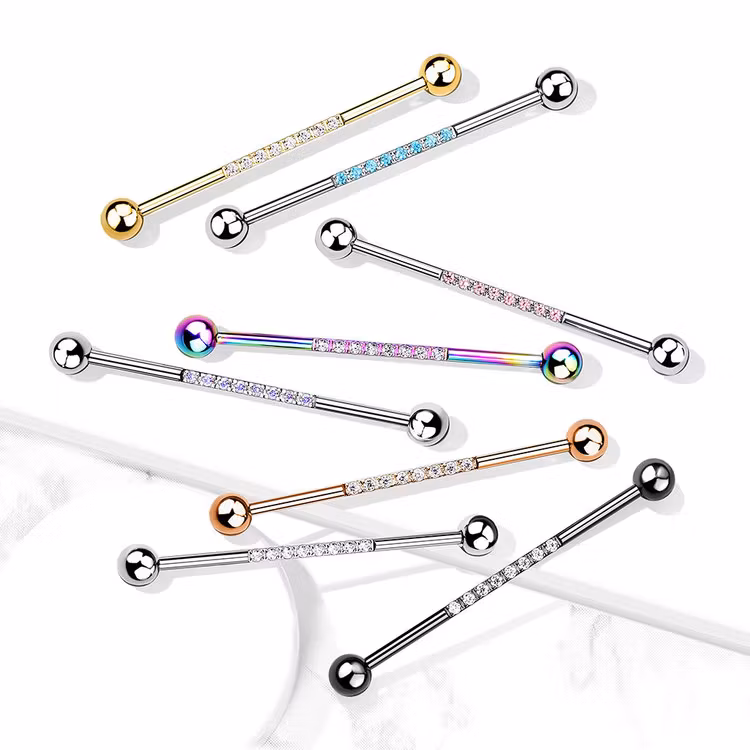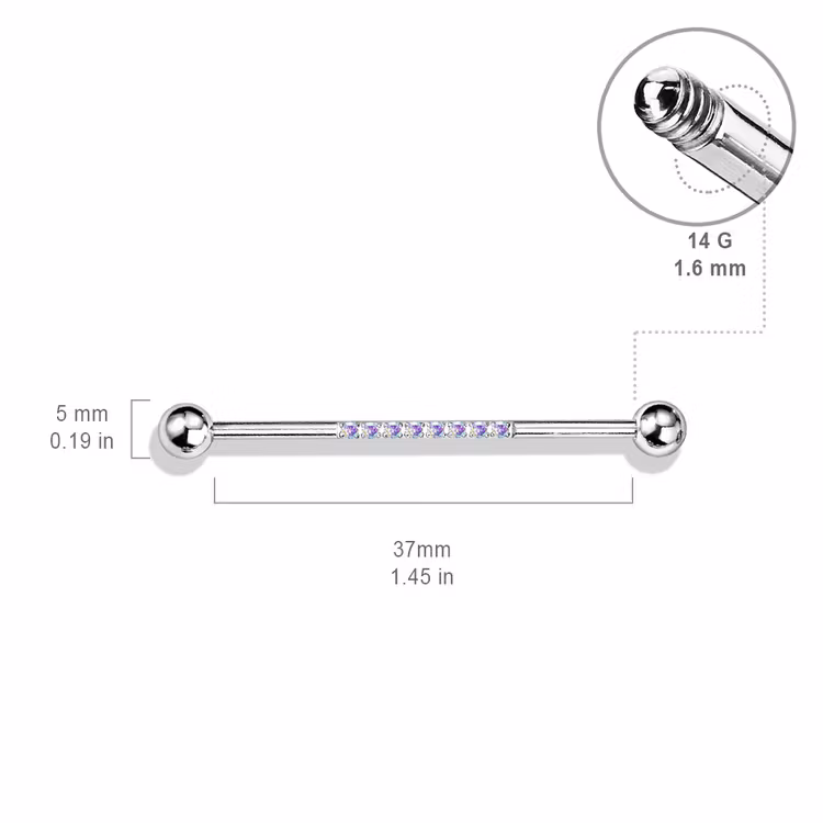 Industrial barbell med ädelstensband 128.80 NOK Industrial barbell med fina små vita ädelstenar som sitter i mitten av staven. Material: 316L Kirurg stål. Storlek: 1,6*38mm #Färg Vit-#ffffff Guldpläterad-#e2cf8d Svart-#282626 Roséguldpläterad-#e5bead Regnbågsfärgad-#8d26ca I lager. Lägg i korgen Lagersaldo: Artikelnummer: 1917 Dela Information Recensioner Industrial barbell med fina små vita ädelstenar som sitter i mitten av staven. Material: 316L Kirurg stål. Storlek: 1,6*38mm