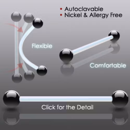 Industrial barbell med bioflexstav och titanpläterade svarta bollar! Helt utan nickel, och allergi vänlig! 316L Kirurg stål under pläteringen. Storlek: 1,6*38mm