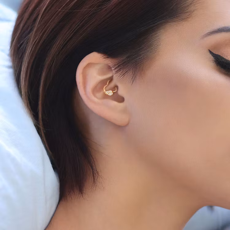 Fint smycke som passar tillexempel daith piercing. Välj mellan höger eller vänster smycken. Material: 316L Kirurg stål Storlek: 1,2*10mm