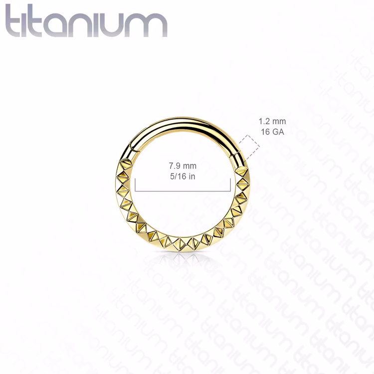 Väldigt fint arbetad piercingring med hamrade detaljer i G23 titan. Ett bra och allergivänligt smycke om man är känslig mot nickel. Storlek: 1,2*8mm. Guld och roséguld ringarna är pläterade med G23 titan under.