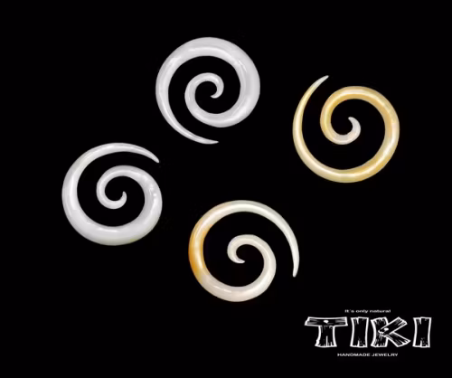 Tiki piercing i pärlemor. Ett hantverk utskuret i pärlemor ifrån odlade snäckor. Vackert smycke som passar till töjt öra. Varje smycke är unik, det kan skilja sig något mellan smyckena i färg. Detta smycke är bra alternativ för nickelallergiker. Säljes styckvis.