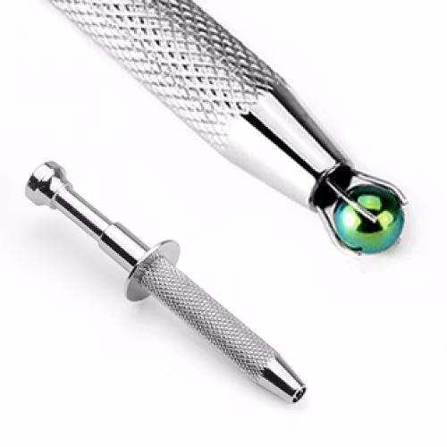 Detta verktyg är perfekt för den som piercar på tajta ställen. Med hjälpa av detta verktyg får du bollen på plats mycket lättare.