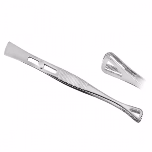Pennington (Sponge) Tweezers Standard med ett lätt lås. Prova den här istället för de vanliga tängerna. Den är lättare, mindre och lättare att arbeta med en hand. Bra alternativ. Du drar det lilla låset tills du känner att den sitter fast ordentligt. Så enkel och så genial. De piercare som provat. har bara massa positivt att säga. Inga osterila gummiband behövs. 410 ASTM kirurg stål.