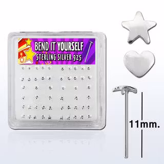 52 stycken böj själv näspiercingar med stjärna och hjärta. Material: 925 sterling silver. Tjocklek på staven är 0,6mm, toppen är 2mm