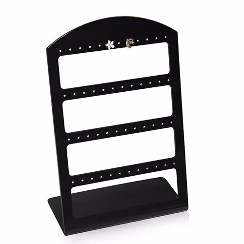 Display i svart plast med rum för 48 stycken smycken. Passar bra på tillexempel kassa disk eller hylla. Hålen är 1,6mm. Storlek: 4&3/4"(H) x 7&3/4"(B)