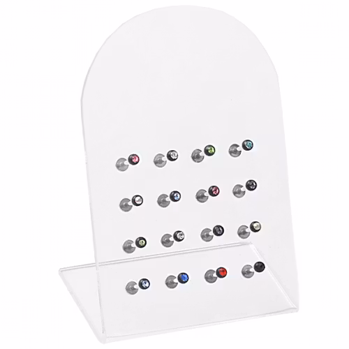 Display till ex. labretter, tragus/helix smycken eller vanliga örhängen. Passar till smycken som har en stav som är max 1,2mm i tjocklek. Displayen är gjord för att visa 16st smycken. Displayens längd: 9cm, bredd: 5,7cm. (Smycken ingår ej)