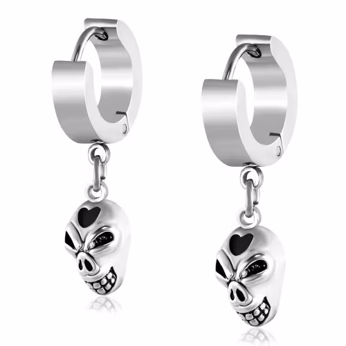 Örhängen med hängande döskallar och svarta inläggningar. Säljs parvis!
