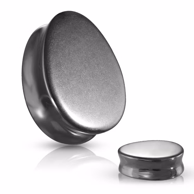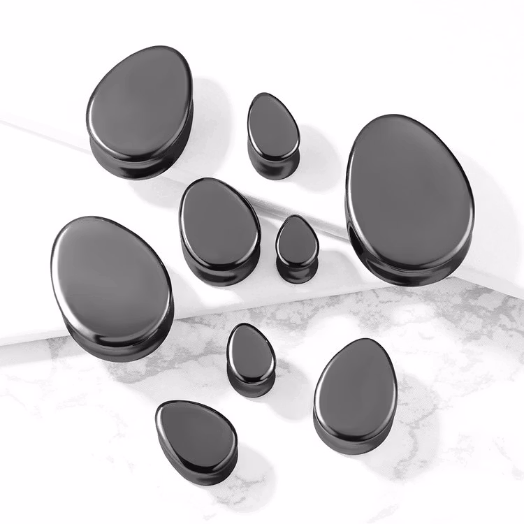 Plugg gjord av hematit sten. Hematit är en typ av järnmalmsmineral. Hematit är vanligt i tropiska jordar. Hematit kan också kallas blodsten då vattnet färgas rött när den slipas. Den är avstressande, skyddande och stärker problemlösning. Hematit är en väldigt jordande sten som hjälper till att absorbera negativa energier och lugnar vid stressiga situationer.