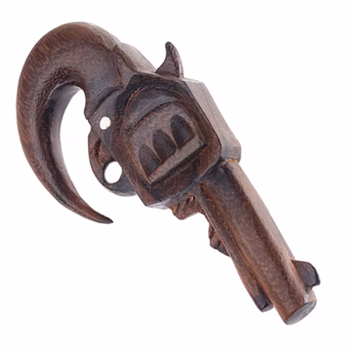 Handgjord tiki piercing till öra i sono wood. Organiskt material som gör att huden kan andas, vilket gör att det luktar mycket mindre om smycket/huden än andra material. Varje smycke är ett unikt handarbete, det kan skilja sig något mellan smyckena i färg och form. Detta smycke är ett bra alternativ för nickelallergiker, då smycket är gjort i trä.