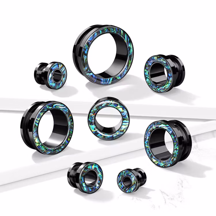Tunnel med abalone kanter 52.60 NOK Tunnel i 316L Kirurg stål med svart plätering och abalone infattning runt ramen. @Storlek 6mm 8mm 10mm 12mm 14mm 16mm 19mm 22mm 25mm I lager. Lägg i korgen Lagersaldo: Artikelnummer: 1921 Dela Information Recensioner Tunnel i 316L Kirurg stål med svart plätering och abalone infattning runt ramen.