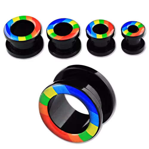 Piercing till öra i akrylplast med regnbågs mönster Gängad på ena sidan, så man lätt kan skruva bort bakre delen. Detta smycke är ett bra alternativ för nickela